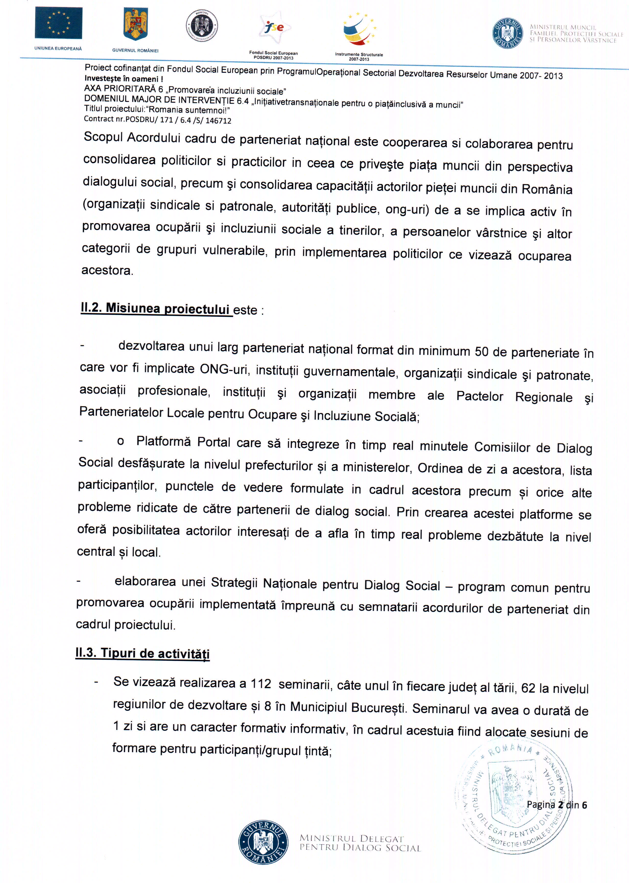 Activitățile care vor fi implementate vor avea ca temă generală: Stimularea și susținerea inovării prin schimbul de experiențe și bune practici și de cercetare într-o nouă abordare în domeniul dialogului social.
