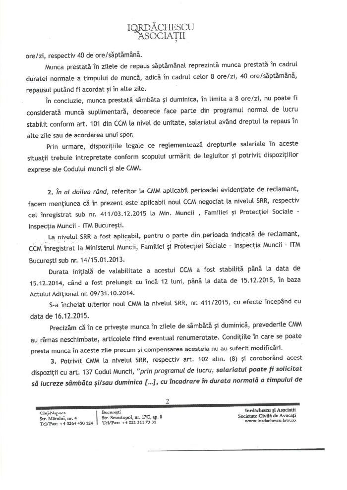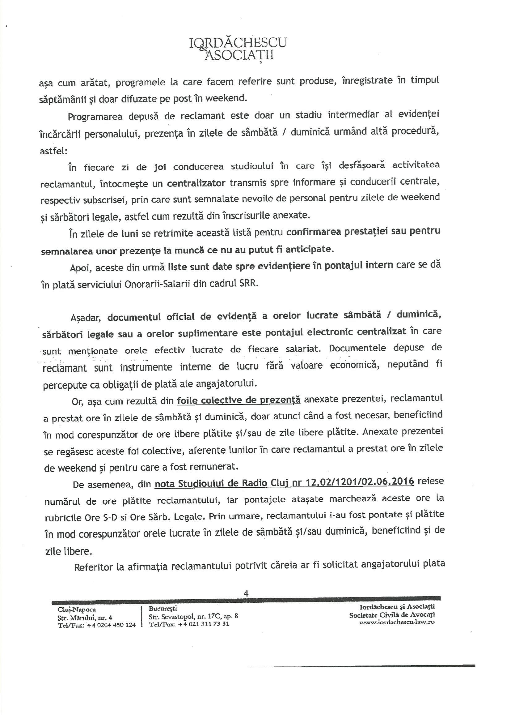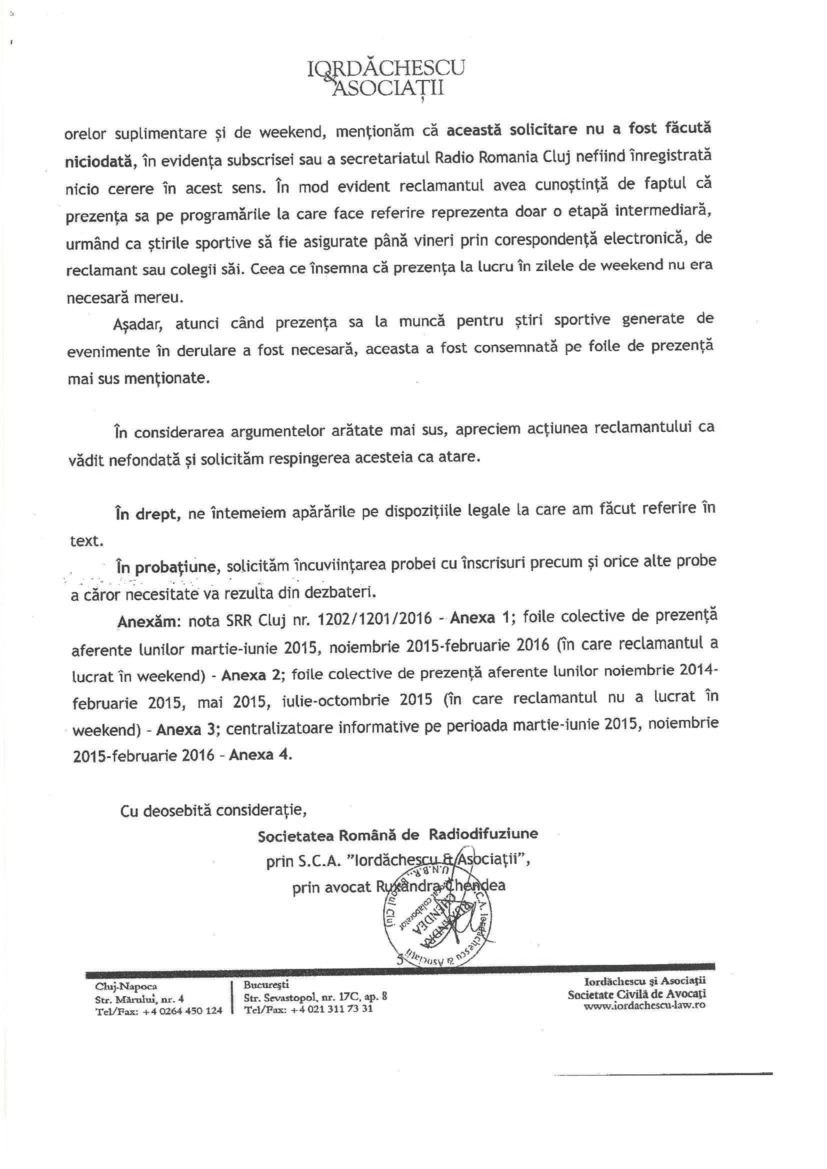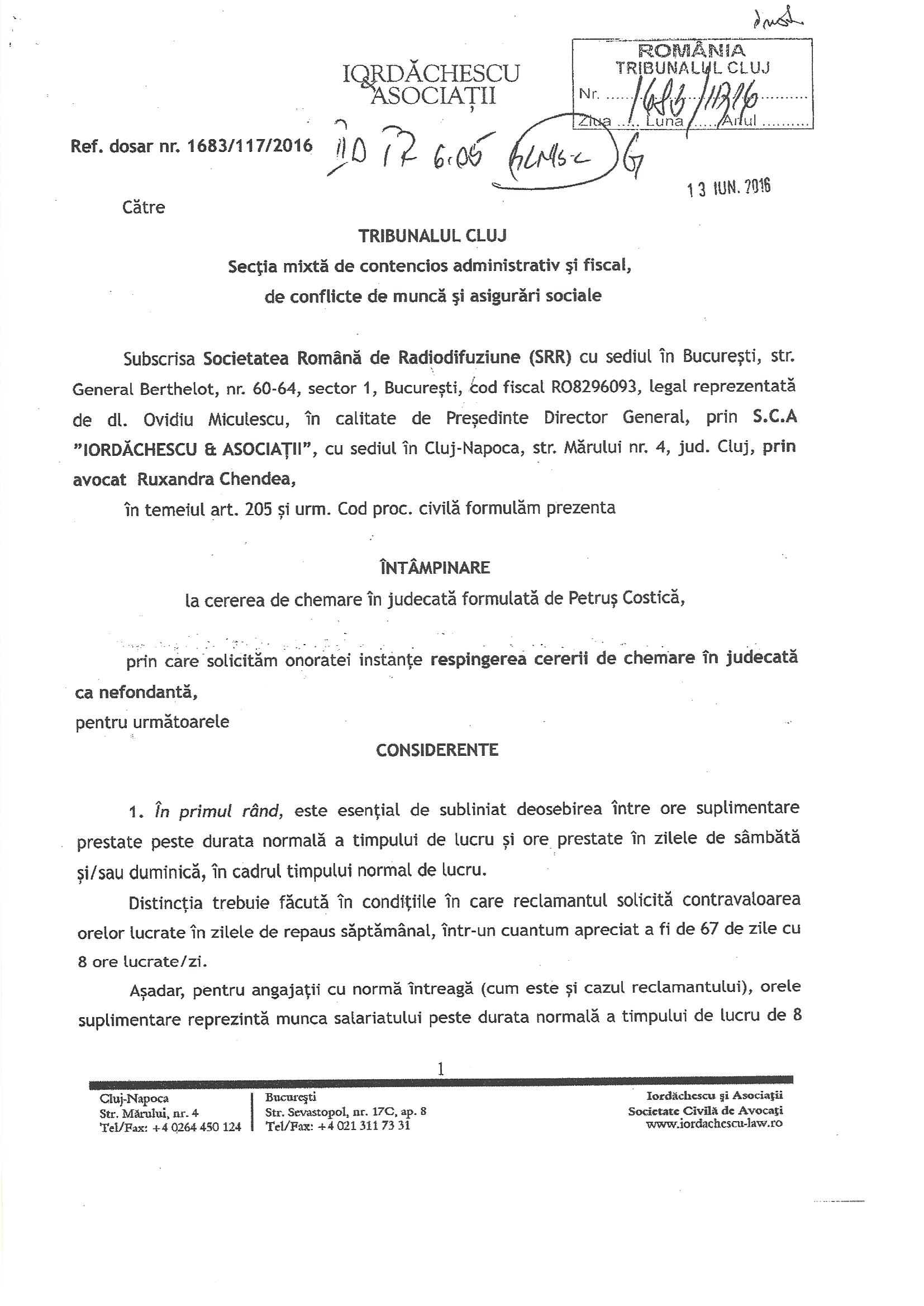 Aceasta a fost întâmpinarea depusă de SRR prin casa de avocatura Iordăchescu și asociații: