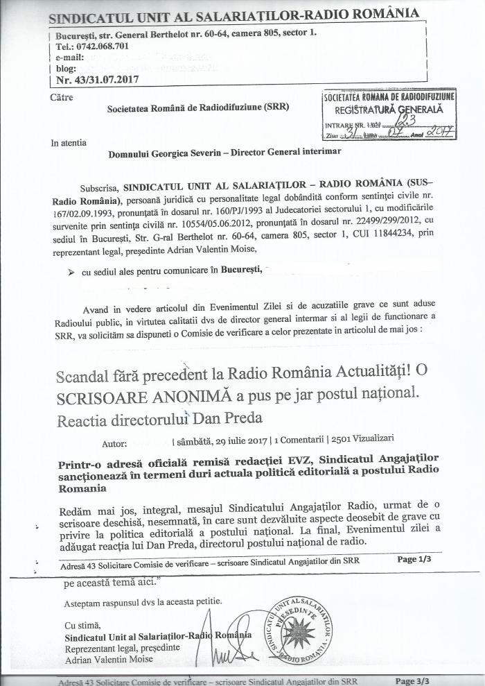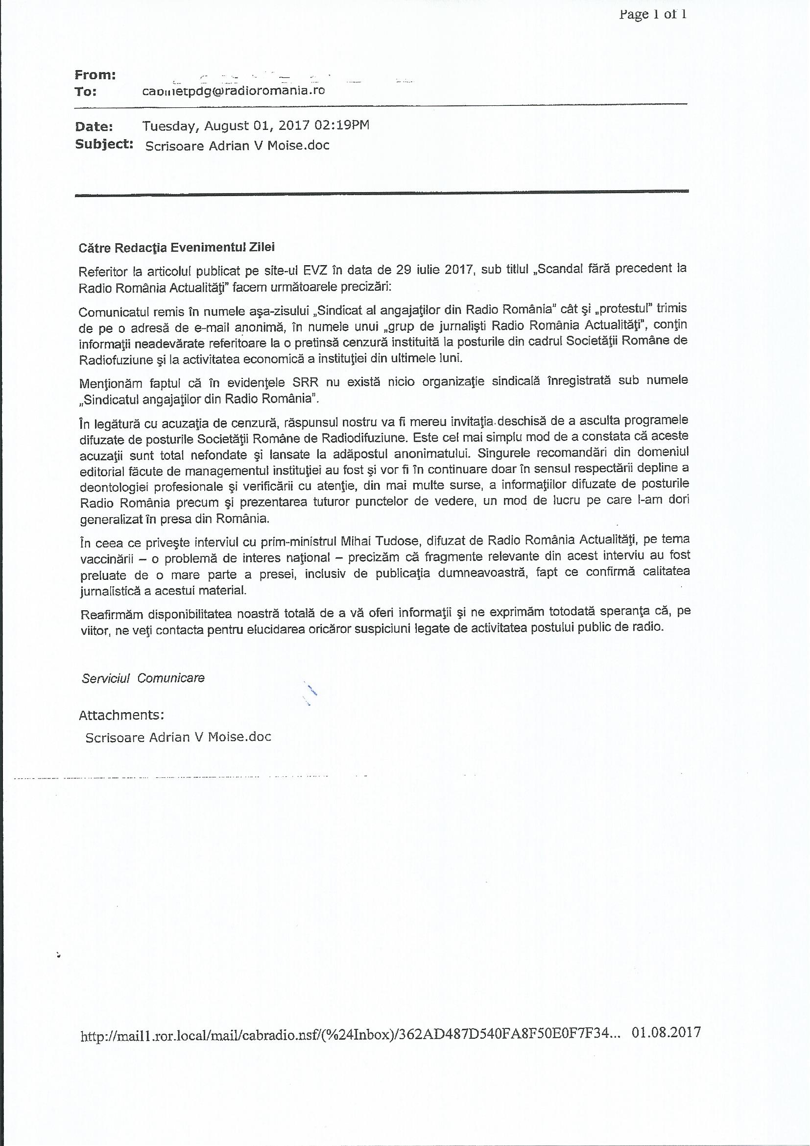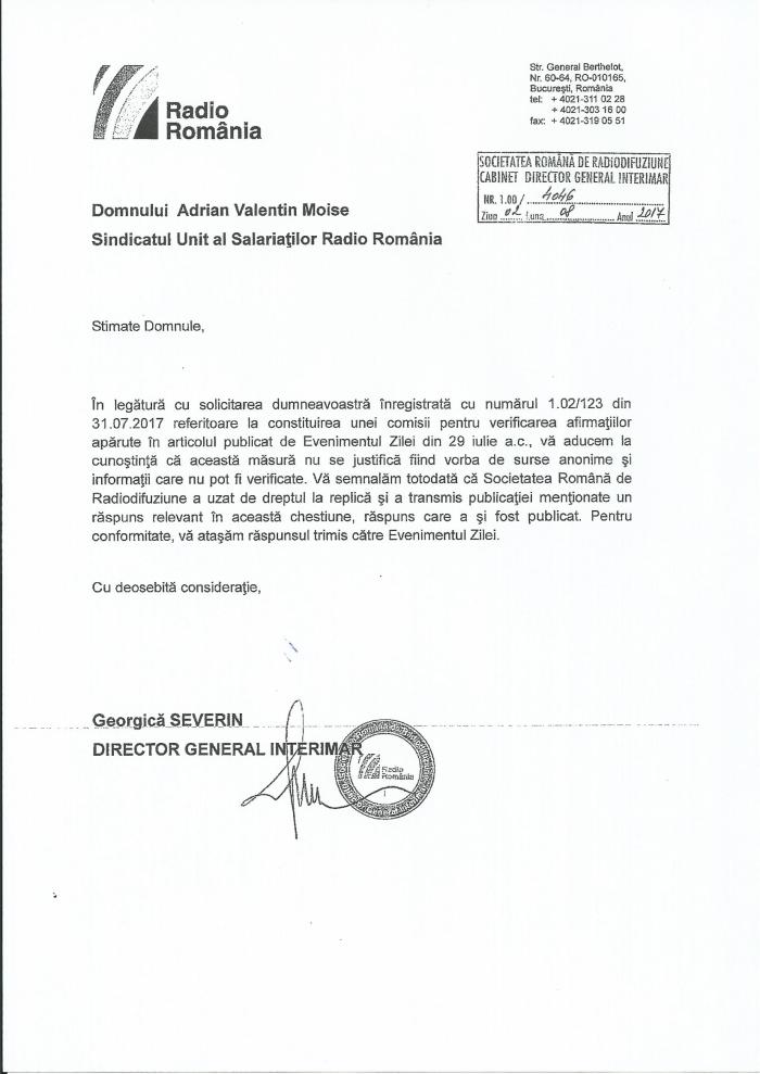 Neașteptat de repede, nu ca pe vremea de tristă amintire a miculescienilor, în care trebuia să așteptăm cel puțin 30 de zile, a venit răspunsul lui Georgică Severin. Iată-l: