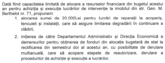 SRR, care este prin Legea 41/1994 administrator al unei clădiri a statului, are obligația să aibă grijă de ea și pentru că nu există fonduri pentru consolidare și reabilitare, trebuie să o protejeze prin lucrări de reparații la acoperiș, pentru a limita degradarea acesteia.
