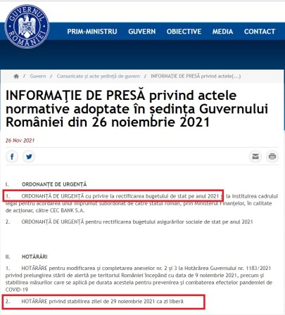 A două veste bună este că luni, 29 noiembrie a.c., a fost decretată zi liberă în regim de recuperare.