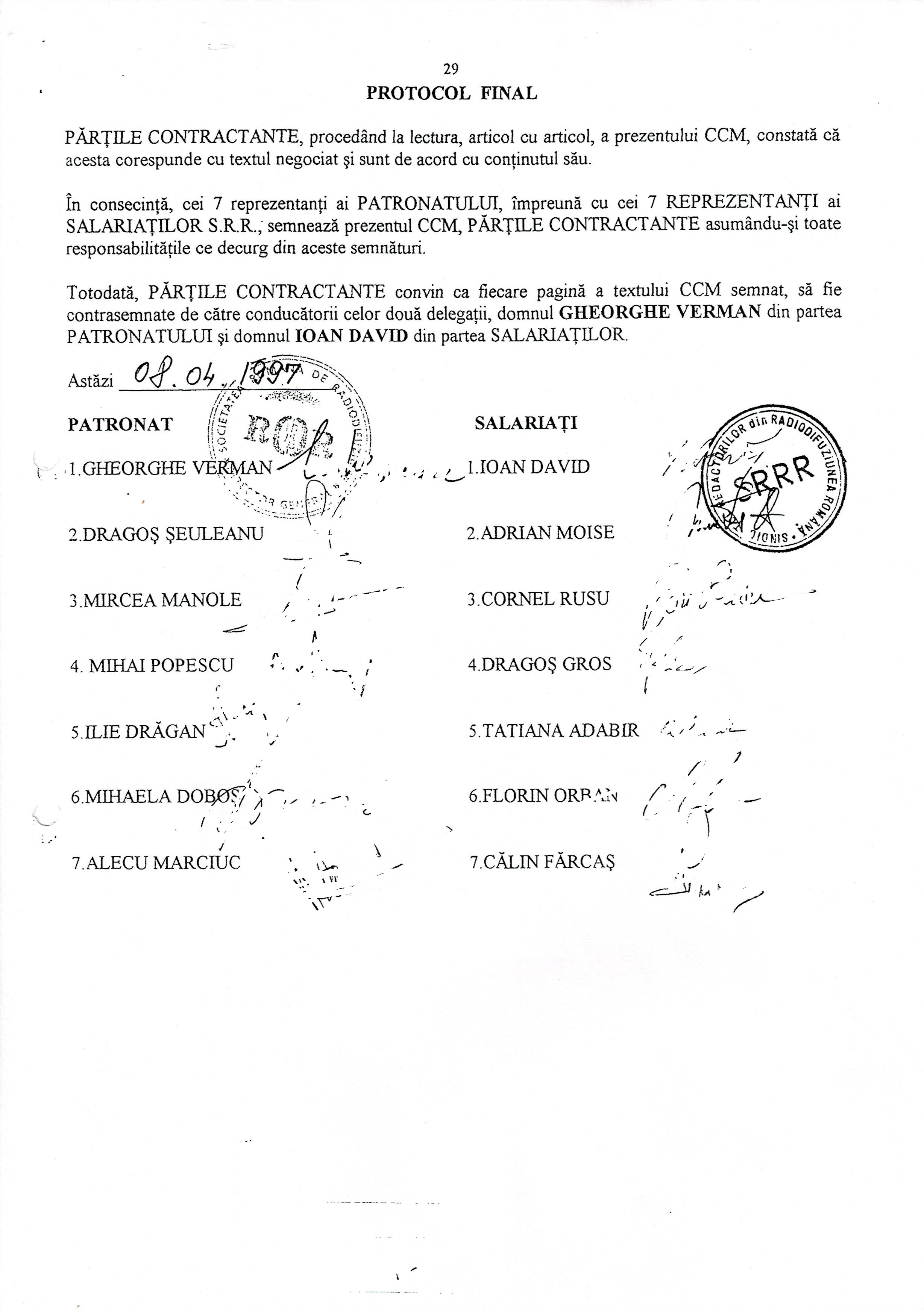 Toate pierderile din CCM al SRR a drepturilor voastre, fie colective, fie individuale, au fost ”realizate” de către cei care au participat direct ca negociatori în Comisia Paritară din partea Sindicatului Liber al lucrătorilor din SRR, în schimbul unor beneficii personale, așa cum ne prezenta dl Alin Pop în scrisoarea ”pierdută” (vezi aici).
