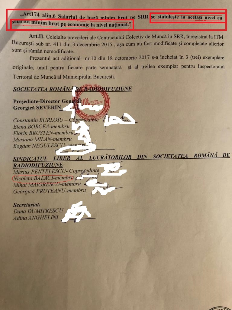 Acesta este documentul (Actul adițional nr. 10) privind eliminarea definitivă a majorării salariului minim pe SRR cu 40%. Consider că este cel mai grav act de trădare din partea reprezentanților salariaților în Comisia Paritară SRR din 1990 și până în prezent!