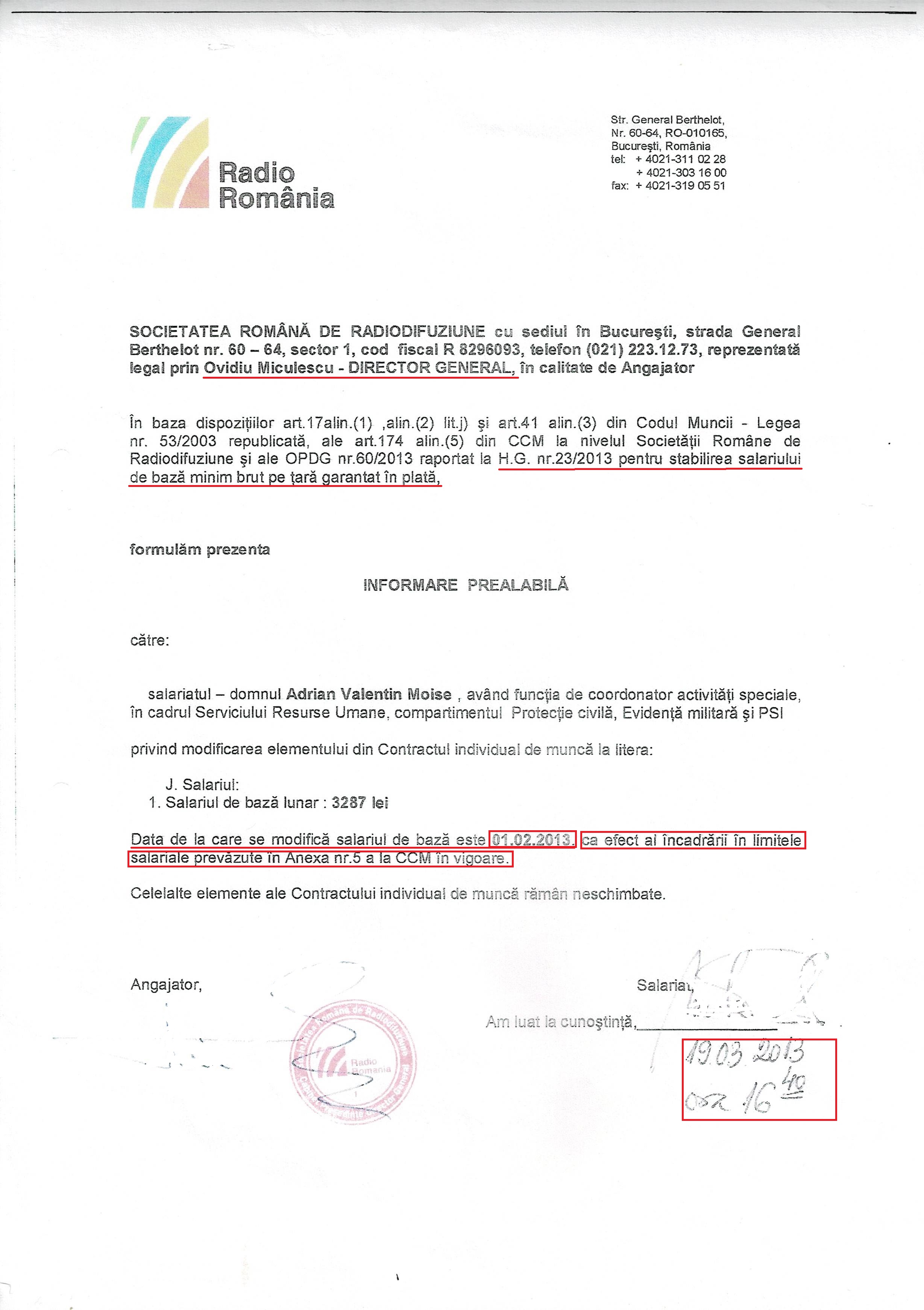 Așadar, în 15 ianuarie 2013, sub domnia lui Ovidiu Miculescu, s-a ”negociat” și semnat un nou Contract de Muncă la nivel de SRR (CCM la SRR):